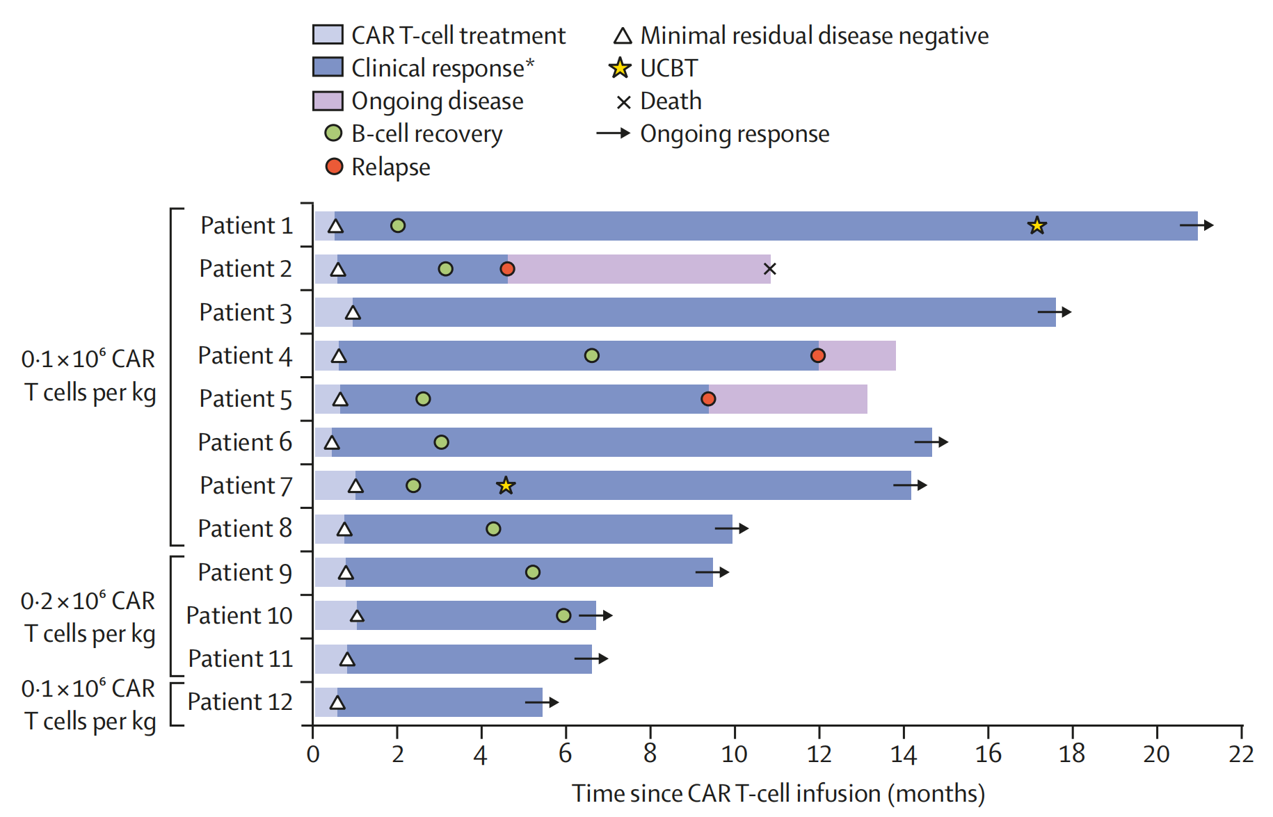 图1 B-ALL 患者接受META 10-19治疗后的疗效和随访情况