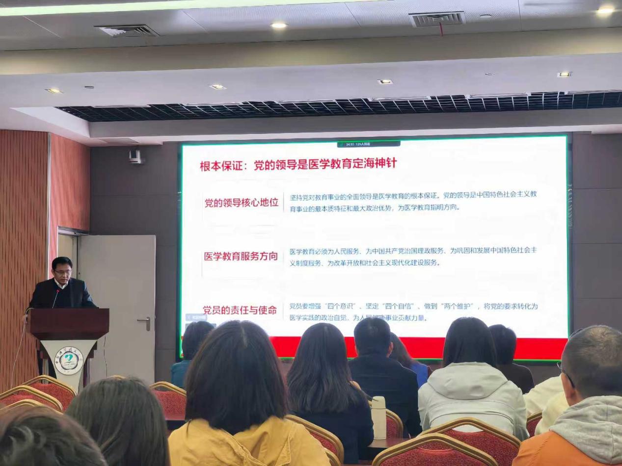 本次党课目的在于激励医学生把个人成长融入党和国家事业发展的大局之中,提升政治站位,凭借仁爱之心与专业才华践行“健康所系,性命相托”的医学誓言。课程从“党旗引领医学教育”“立德树人铸仁心仁术”“改革与科技自立自强”等多个维度深入展开,深刻阐释了在新时代背景下,医学生应当如何书写一份无愧于时代、无愧于人民的合格答卷。