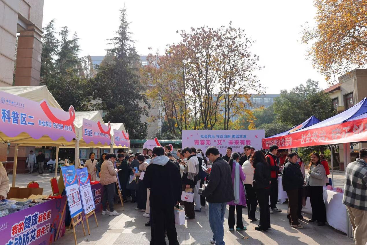 12月1日,第38个 “世界艾滋病日” 当天,中国科学技术大学东区师生活动中心广场人头攒动,一场以 “青春无‘艾’,未来有爱” 为主题的科普宣传活动温情启幕。活动紧扣 “社会共治,守正创新,终结艾滋” 的宣传主线,通过多元形式为师生普及防艾知识,筑牢校园健康防线。